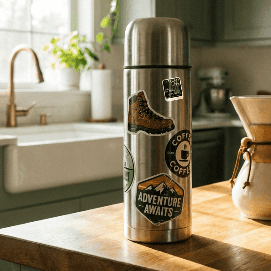 Flexible self-adhesive stamp, designed to be added to existing products or objects.
